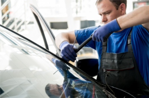automobile-special-workers-remove-old-windscreen-windshield-car-auto-service-station-garage